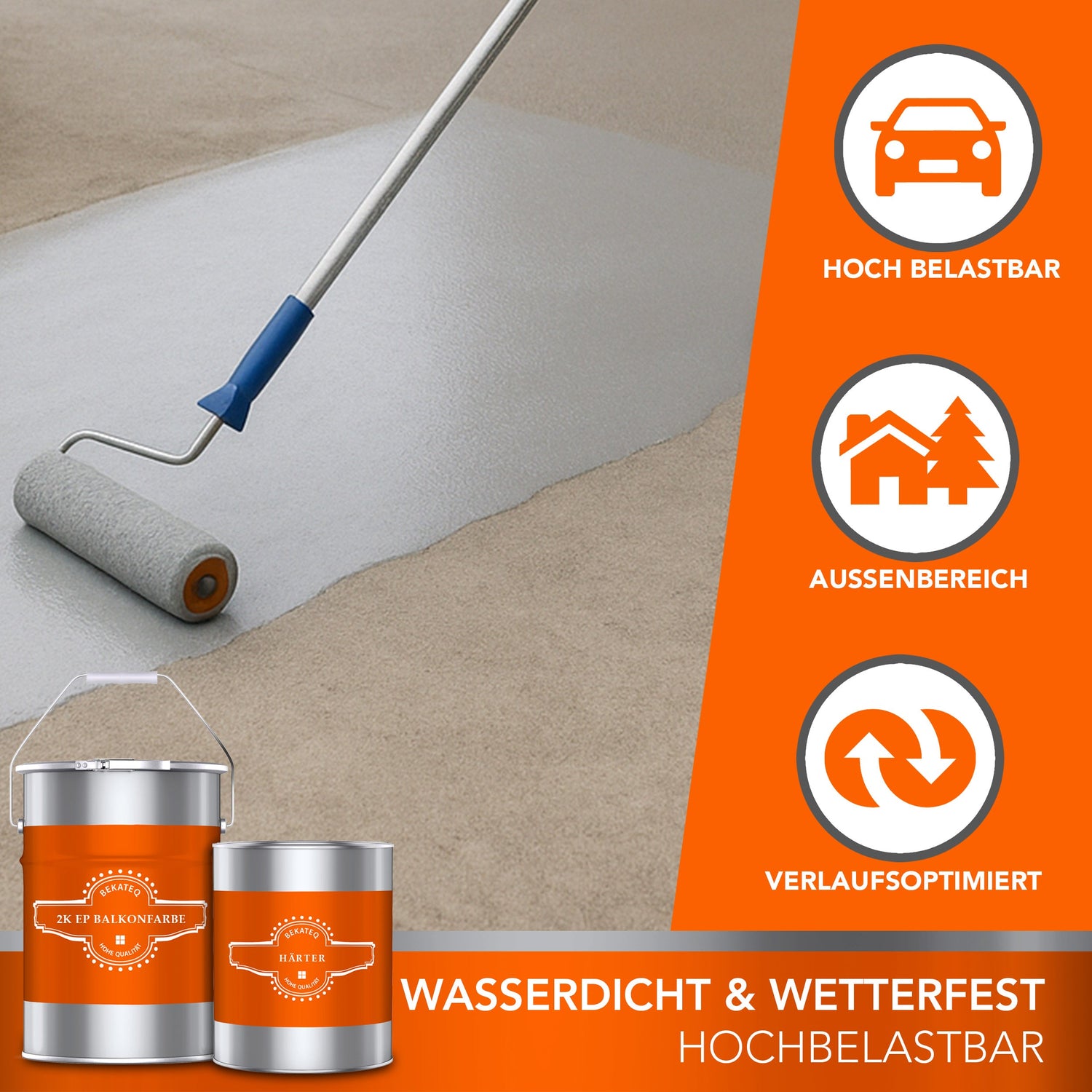 3. BK-300EP 2K Epoxidharz Balkonbeschichtung mit 300g/qm pro Anstrich, als Rollversiegelung, zwei Anstriche sind empfohlen