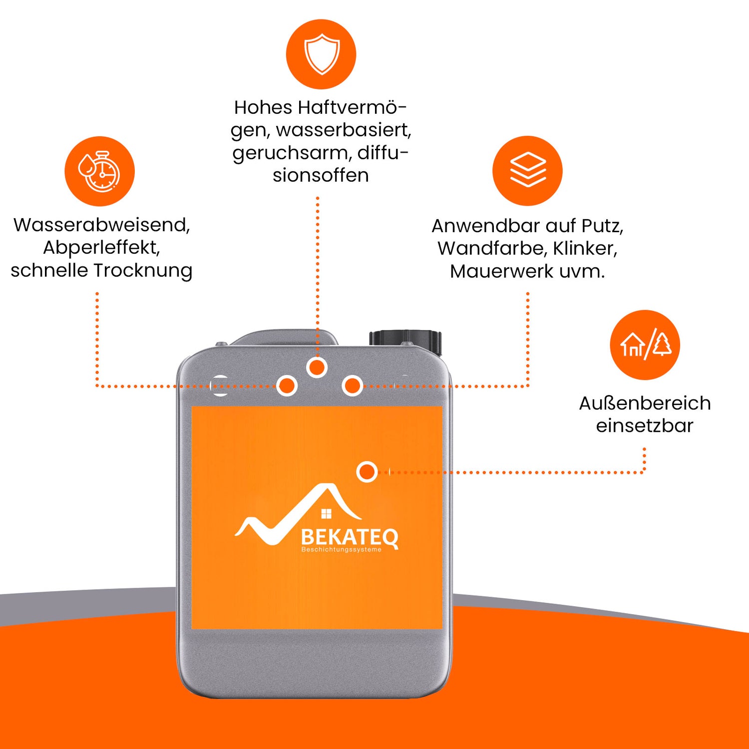 Auf die Fassade aufgebracht, bildet es eine effektive Schutzschicht, die verhindert, das die Sprühlacke auf der Fassade oder dem Mauerwerk haften bleiben. BEKATEQ Anti-Graffiti-Beschichtung bildet eine Schutzschicht, von der sich Graffiti mit kaltem Wasser und ohne zusätzliche Reinigungsmittel abwaschen lassen. Neben der leichten Entfernbarkeit, wirkt die Anti-Graffiti-Beschichtung hydrophobierend und trocknet glanzarm aus.