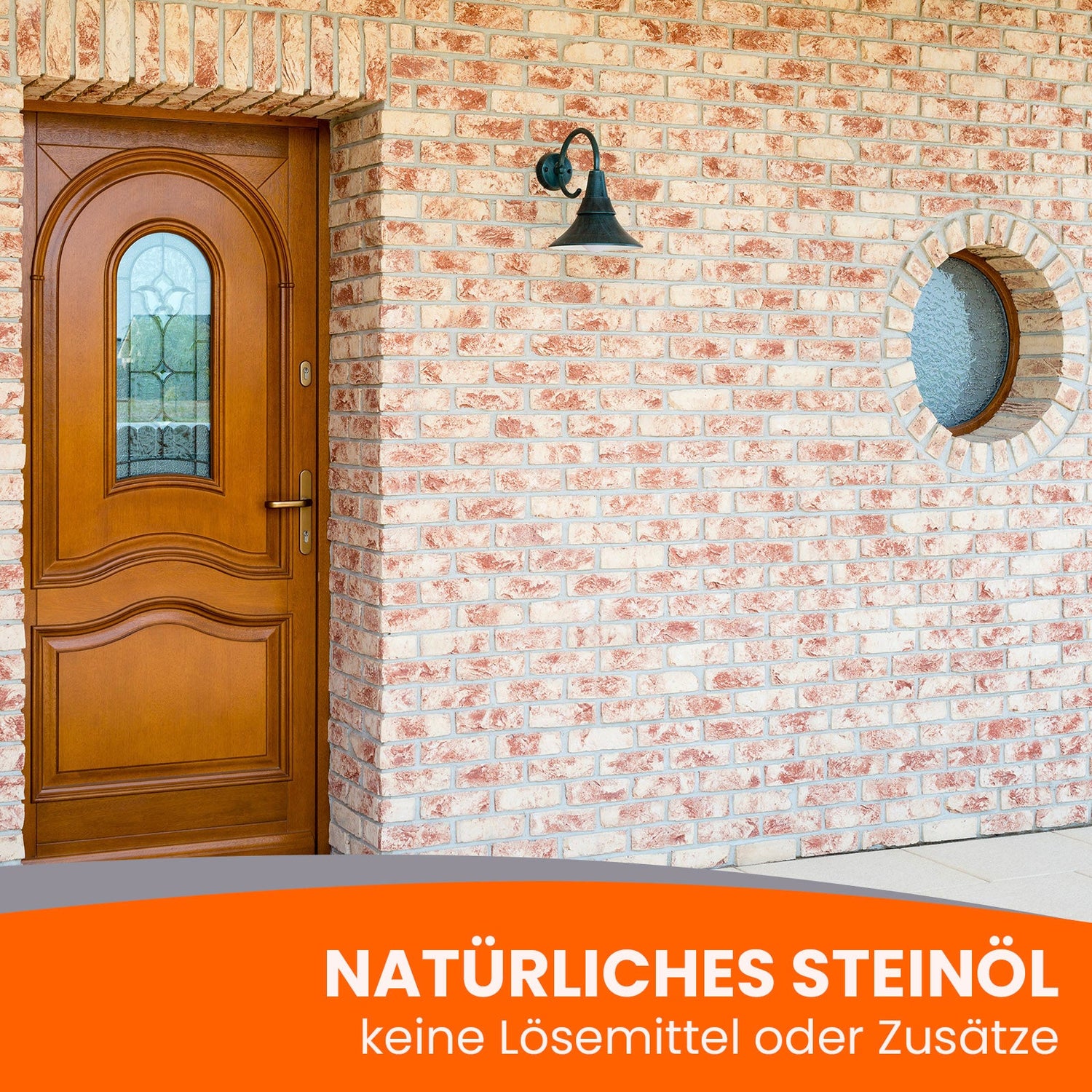 Das natürliche und lösemittelfreie Steinöl der Marke BEKATEQ verhindert das Eindringen von Feuchtigkeit und Schmutz. Aufgrund der gefüllten Poren wirkt die Oberfläche satt und ist zudem wasserabweisend. Zur regelmäßigen Steinpflege dringt das Steinöl tief ein und pflegt die Steinoberfläche von innen. Die natürlichen Farben bleiben erhalten, wodurch die Farbstruktur des Naturbodens hervorgehoben wird.