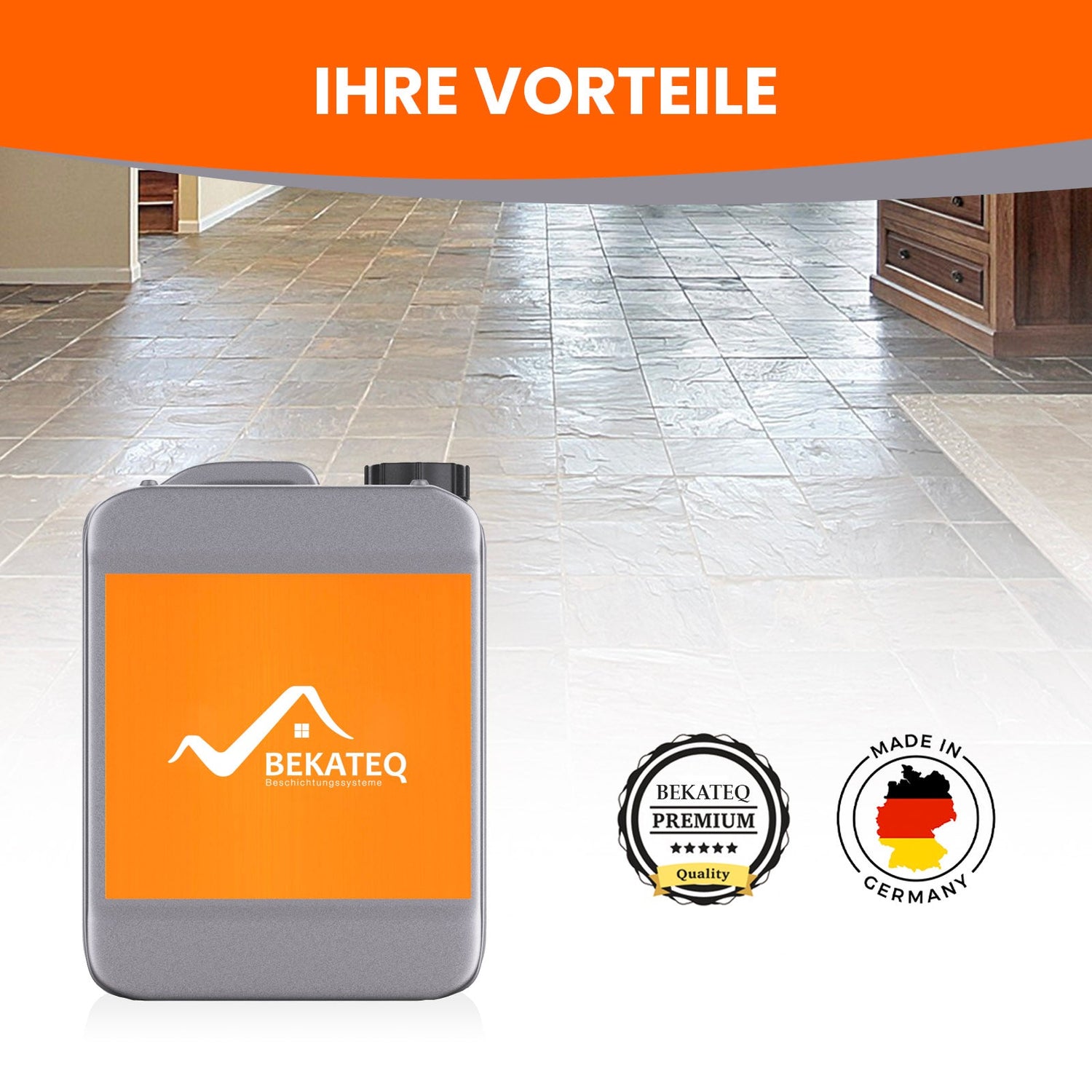 Neue Steinböden schützen: Neue Natur- und Kunststeinböden wie Schiefer, Marmor, Granit, Beton und fast alle anderen Gegenstände aus den unterschiedlichsten offenporigen Steinsorten, werden durch den Bekateq BE-855 Steinöl vor Feuchtigkeit und Schmutz geschützt. Das umweltfreundliche Natursteinöl wird auf die trockene, saubere und fettfreie Oberfläche aufgetragen, zieht in den Stein ein und bildet einen elastischen, schmutz- und wasserabweisenden Schutzfilm.