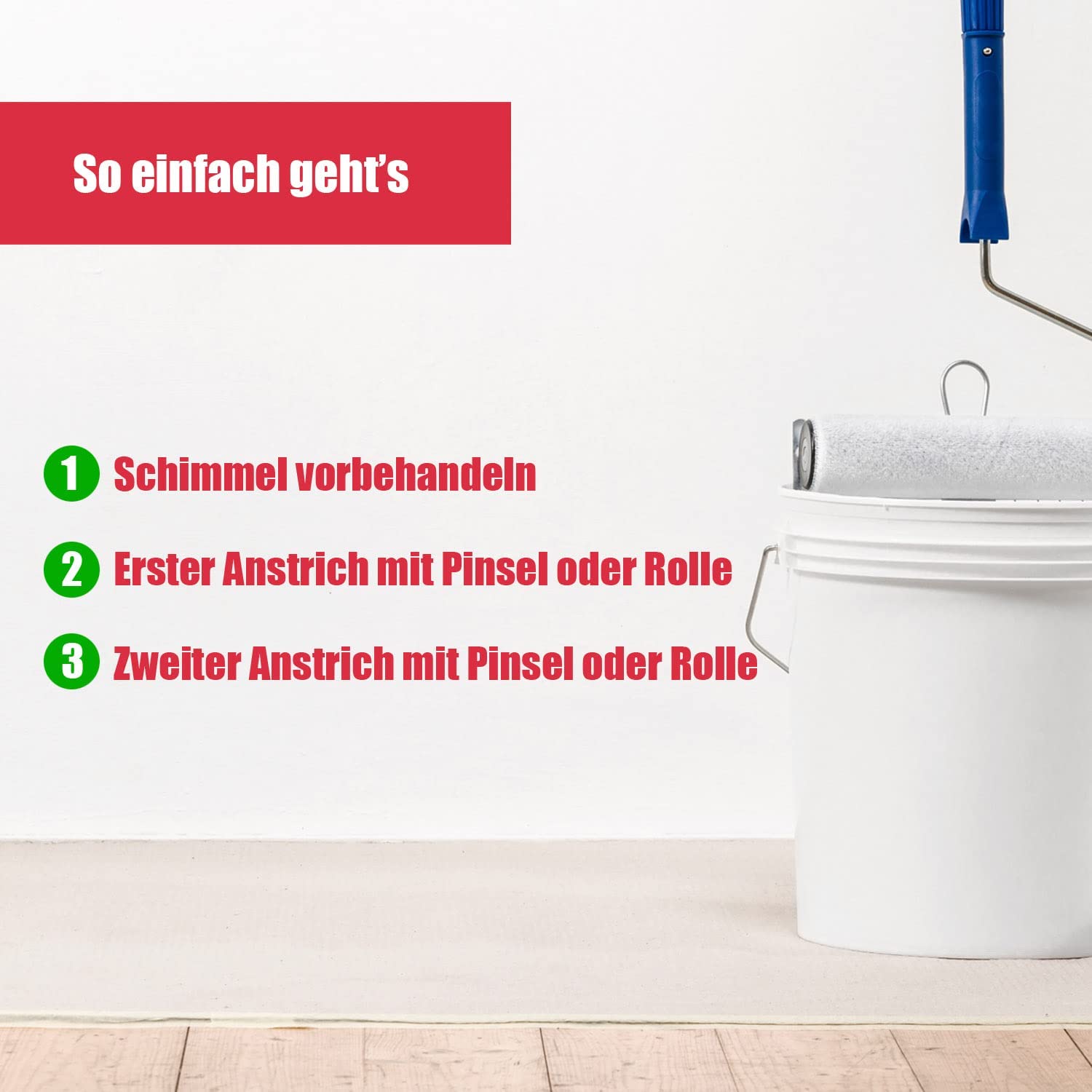 Anti-Schimmel-Wandfarbe - Spezial-Dispersionsfarbe für hochwertige fungizide und bakterizide Decken- und Wandanstriche pilzgefährdeter und pilzbefallener Flächen innen. Speziell einsetzbar in Räumen, die durch hohe Luftfeuchtigkeit gefährdet sind, wie Küchen, Bäder uvm.