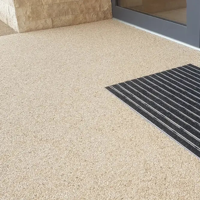 Für Steinteppiche im Außenbereich ist Epoxidharz meist besser geeignet als PU-Harz. Es bietet eine höhere Festigkeit, sehr gute Haftung auf mineralischen Untergründen und eine besonders stabile Bindung der Steine. Dadurch ist der Steinteppich langlebiger und widerstandsfähiger bei starker Beanspruchung.