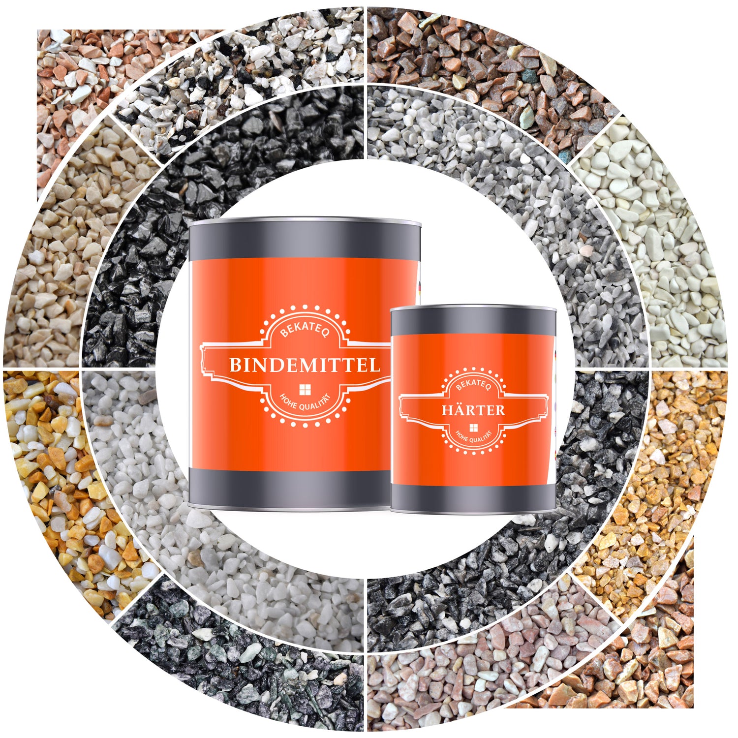 Steinteppich Set mit 2K Bindemittel in verschiedenen Varianten