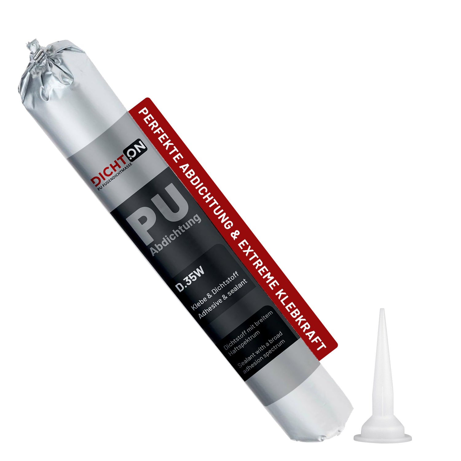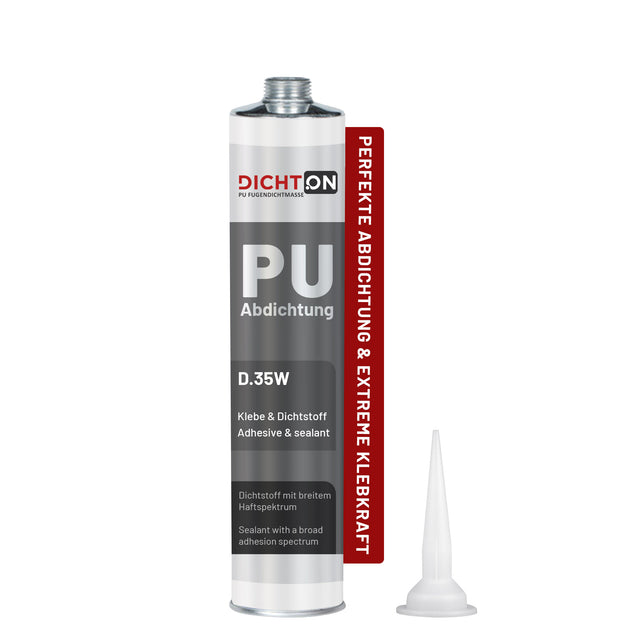 Eine neuartige elastische Fugenabdichtung, die klassische PU-Technologie mit PU-Silylierung kombiniert. Das Produkt verbindet erstklassige Haftung mit besten Verarbeitungsmöglichkeiten und blasenfreier Aushärtung. Es reagiert mit Luftfeuchtigkeit und produziert eine Fugenabdichtung mit einem Dehnfugenanpassungsfaktor von 50%. D.35W verfügt über eine exzellente Haftung auf Oberflächen, die traditionell als problematisch für eine PU-Abdichtung galten, wie z.B. Glas, Aluminium, Stahl, Polycarbonat etc. Zusätzlich wurde das Produkt modifiziert, um die Ausspritzbarkeit zu verbessern. Die einfache Verarbeitung bleibt auch unabhängig unterschiedlichster Temperatur- und Feuchtigkeitsumgebungen vorhanden. Das Produkt ist leicht zu verarbeiten und die Haltbarkeit unterscheidet sich stark von herkömmlichen PU-Abdichtungen.