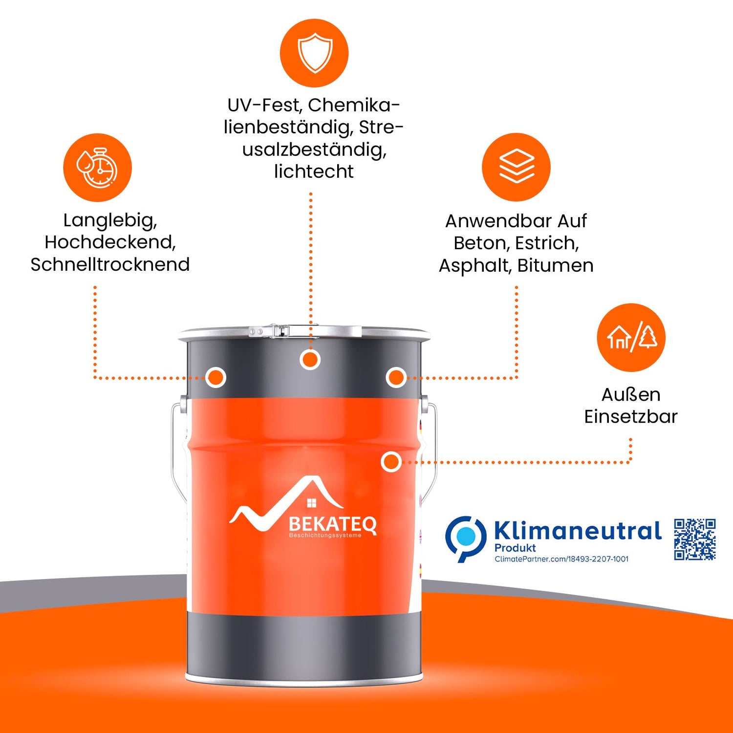 Straßenmarkierungsfarbe in seidenmatt. Gebrauchsfertige, lösemittelhaltige Deckbeschichtung für Markierungen auf Beton, Pflaster oder Asphalt, in Bereichen ohne Zulassung nach BASt! Anwendungsbereiche: Zur Markierung von Beton, Asphalt und sonstigem mineralischen unbehandelten Untergründen.